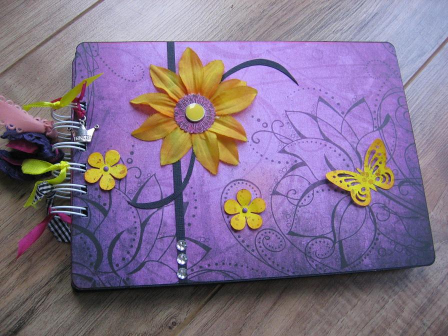 cudne te fiolety! zamieniłabym tylko ten duży kwiat na okładce, na coś bardziej oryginalnego :) np. filcowego :)